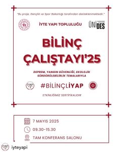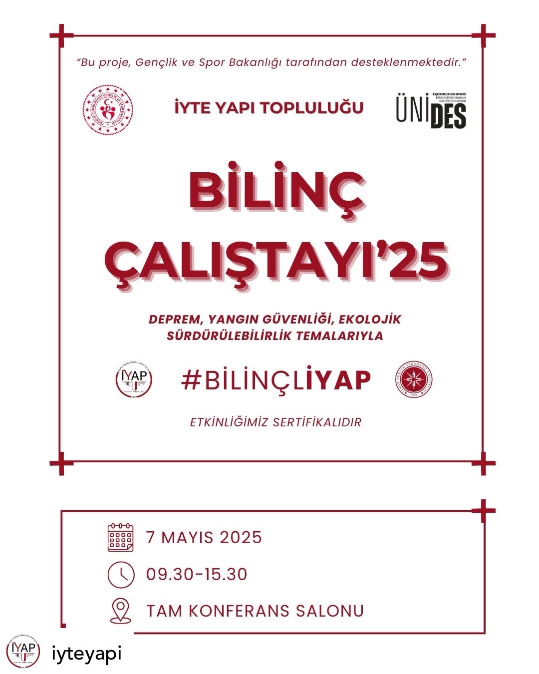 İYTE Yapı Topluluğu olarak bu sene ikincisini düzenleyeceğimiz BİLİNÇ ÇALIŞTAYI | BİLİNÇLİYAP’25 etkinliğimizde sizi de aramızda görmek için sabırsızlanıyoruz.