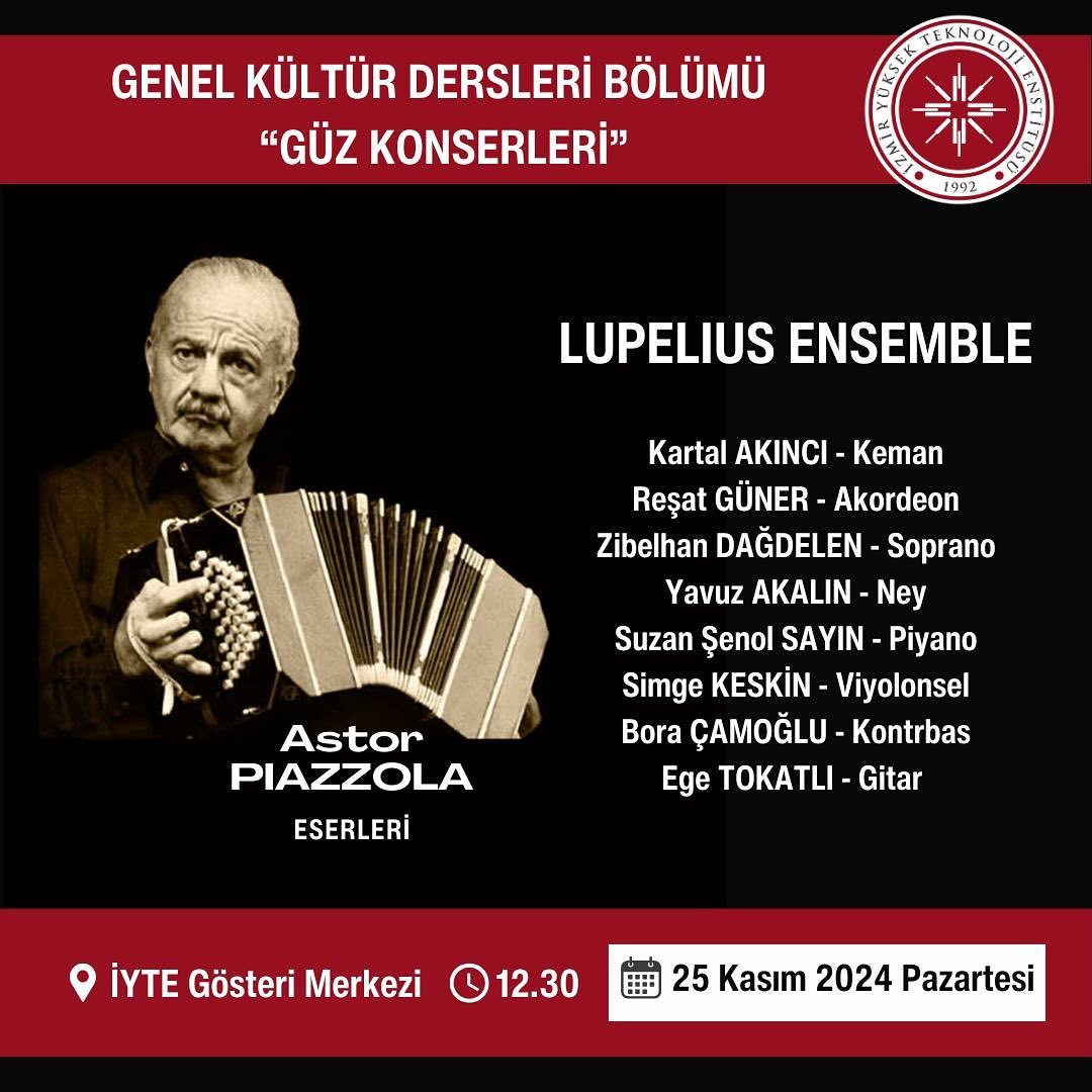 Toplumsal Sorumluluk Projeleri Koordinatörlüğü iş birliğiyle düzenlediğimiz ülkemizin önde gelen müzisyenlerinin icra ettiği nitelikli müzik eserleriyle sizleri yerleşkemizde buluşturmayı hedefleyen “Genel Kültür Dersleri Bölümü Güz Konserleri” etkinlik dizisinin ilk davetlisi olarak “Lupelius Ensemble” grubunu Enstitümüzde ağırlayacağız.