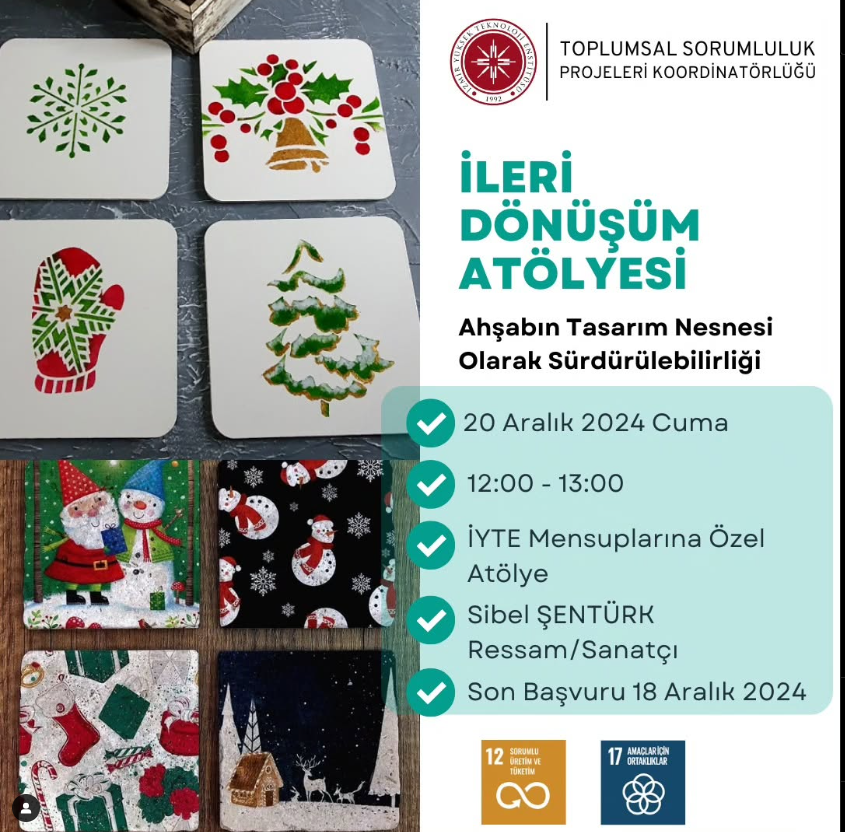 Sürdürülebilir bir geleceğe adım atmak için ücretsiz olarak gerçekleştireceğimiz bu atölyeye katılımınızı bekliyoruz.