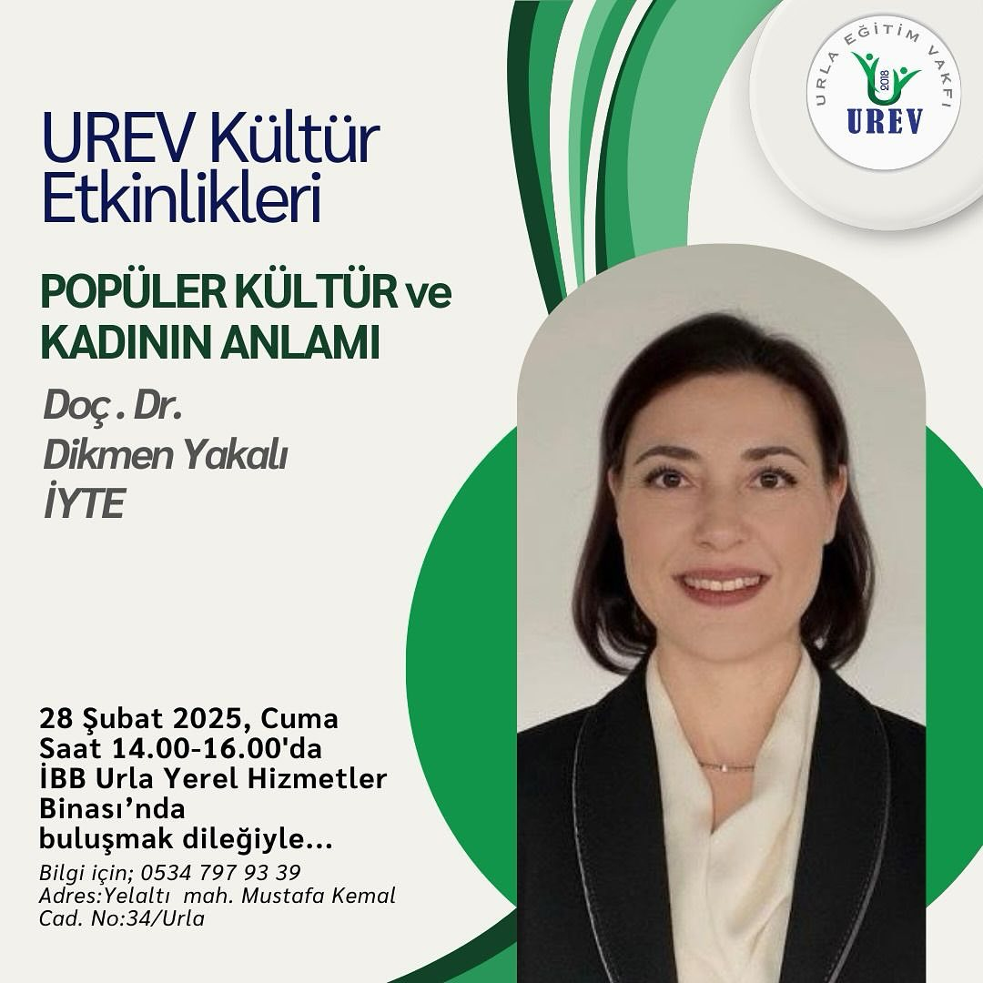 Toplumsal Sorumluluk Projeleri Koordinatörümüz Doç. Dr. Dikmen Yakalı UREV’in davetiyle popüler kültür ve kadın temsili üzerine bir konuşma yapacak.