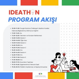 🍃 GDG on Campus IZTECH ve Nextgen toplulukları olarak, sürdürülebilir çözümler üretmek için 9 Kasım’da Bilişim Vadisi’nde buluşuyoruz! 🍃💡Sustainable Start Ideathon ile, güçlü takım çalışmalarıyla küresel sorunlara yenilikçi fikirler geliştirebileceğiniz, ilham dolu bir gün geçirmeye davetlisiniz! Etkinlik, açılış konuşması ile başlayacak ve ardından katılımcılar, 5’er kişilik gruplara ayrılacaktır. Gruplara ayrılmanın ardından, her bir takıma bir ‘Solution Challenge’ başlığı verilecektir. Gün boyunca, toplamda 5 çalışma oturumu gerçekleştirilecek ve bu oturumların sonunda her takım, geliştirdiği çözüm ile ilgili olarak 5 dakikalık bir sunum yapacaktır. Etkinliğin sonunda, takımların projeleri değerlendirilerek ödüller takdim edilecek ve kapanış konuşması ile program sonlandırılacaktır. Bu heyecan verici etkinliği kaçırmayın ve sürdürülebilir geleceğe birlikte adım atalım! 🌎💪