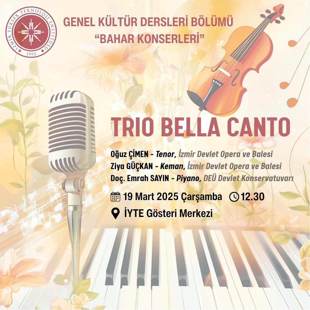 Genel Kültür Dersleri Bölümü ile Toplumsal Sorumluluk Projeleri Koordinatörlüğü iş birliği ile düzenlenen Bahar Konserleri serimizin ilkinde Trio Bella Canto üyelerini ağırlıyoruz.